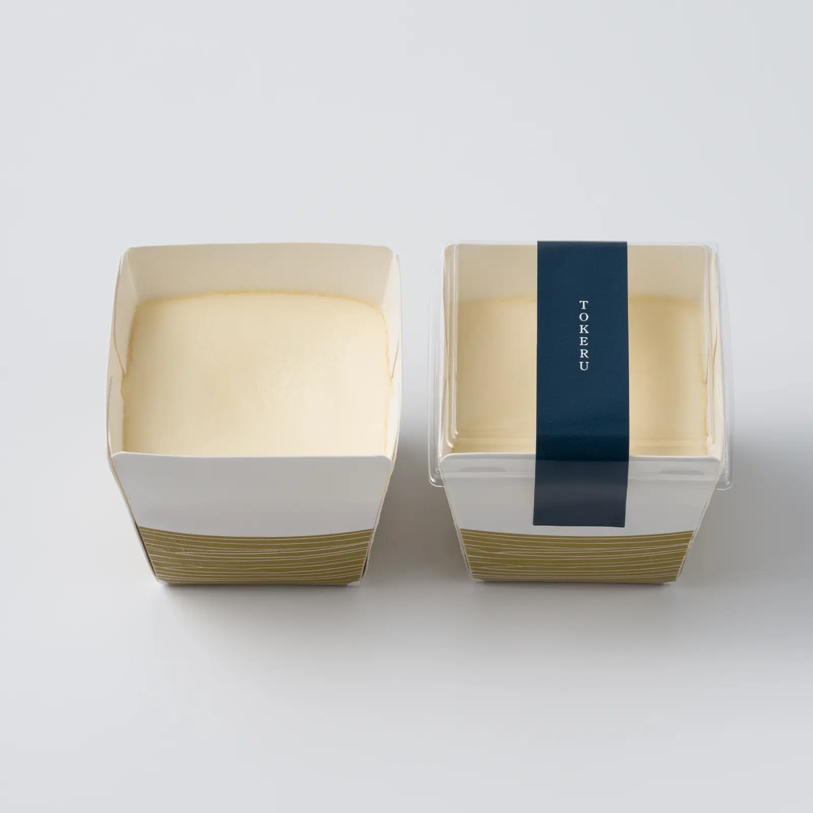 看板商品「酒スフレTOKERU」はやさしい甘さのチーズスフレが口の中でとろけ、 お酒の香りと味わいが広がります。まるで、「すくって食べる日本酒」。