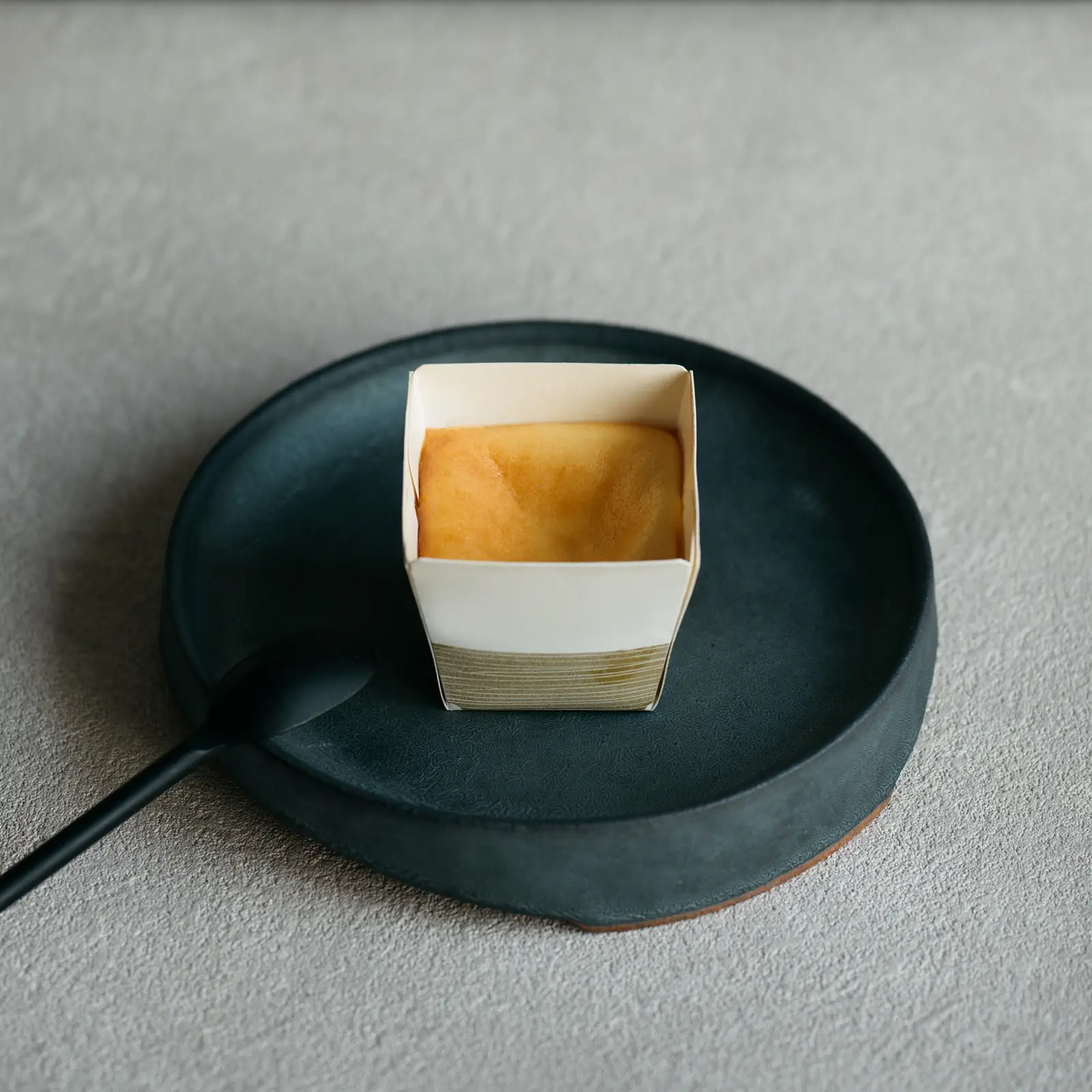 大吟醸原酒と純米吟醸酒粕を使用したベイクドチーズケーキ。ふわっと日本酒の香りと風味が立ち上がり、徐々にチーズの風味へと変わっていく。 熟成した日本酒をかけるとまた美味しい。
